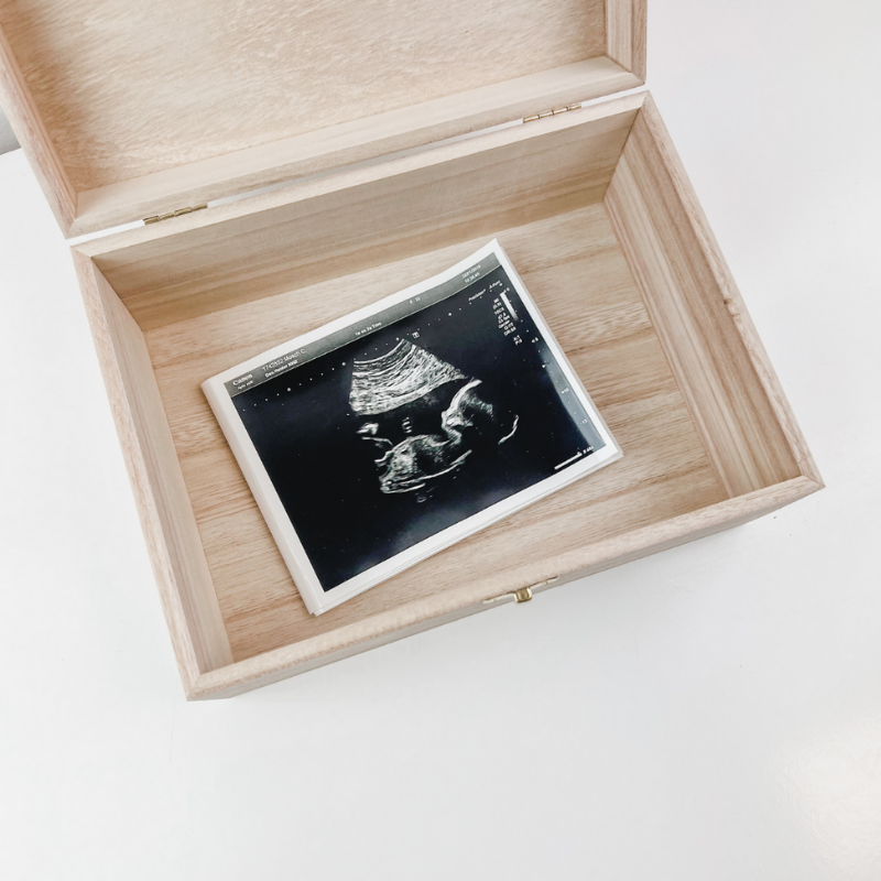 In dit leuke kistje bewaar je de echo’s van je kleintje.