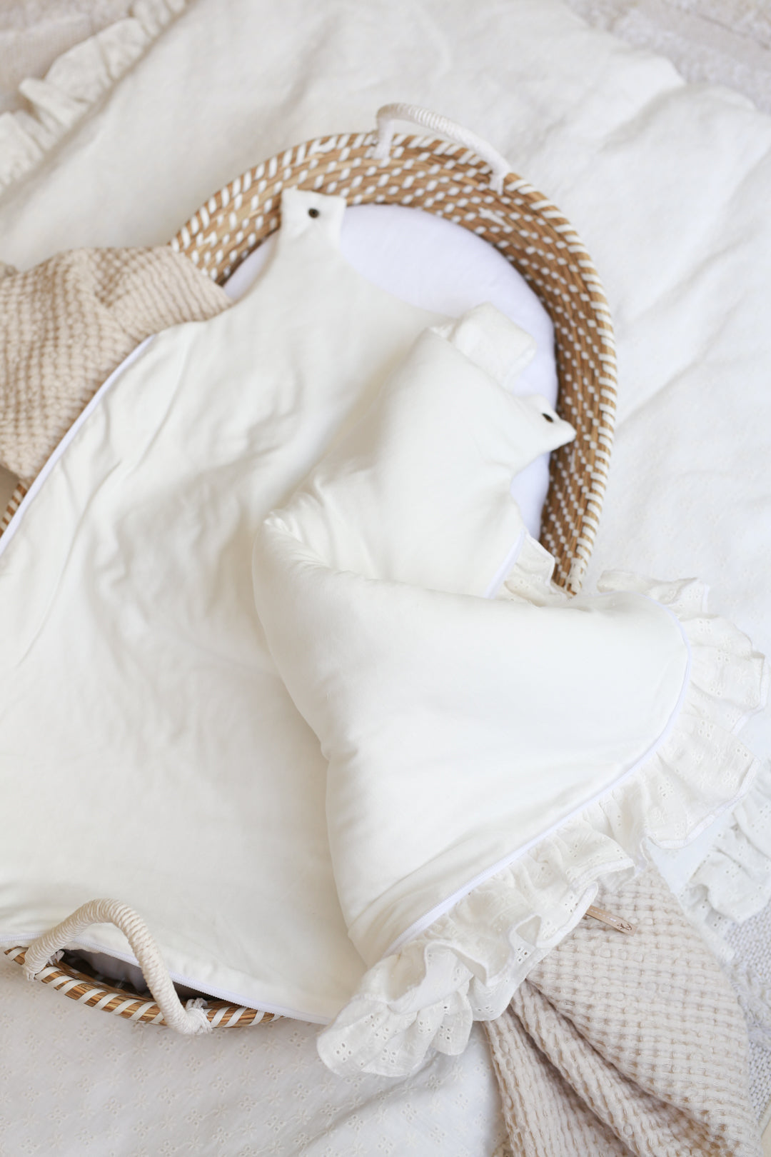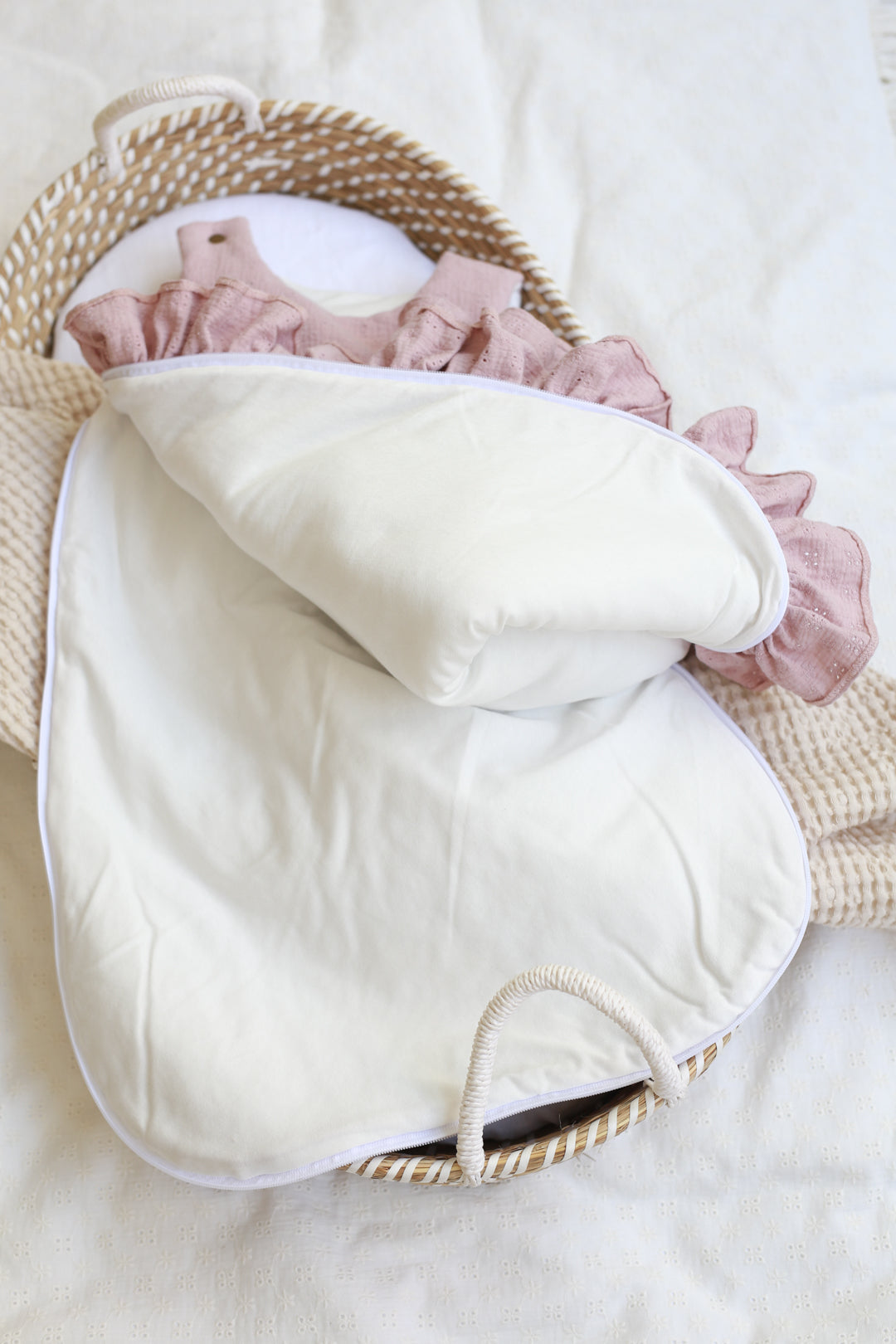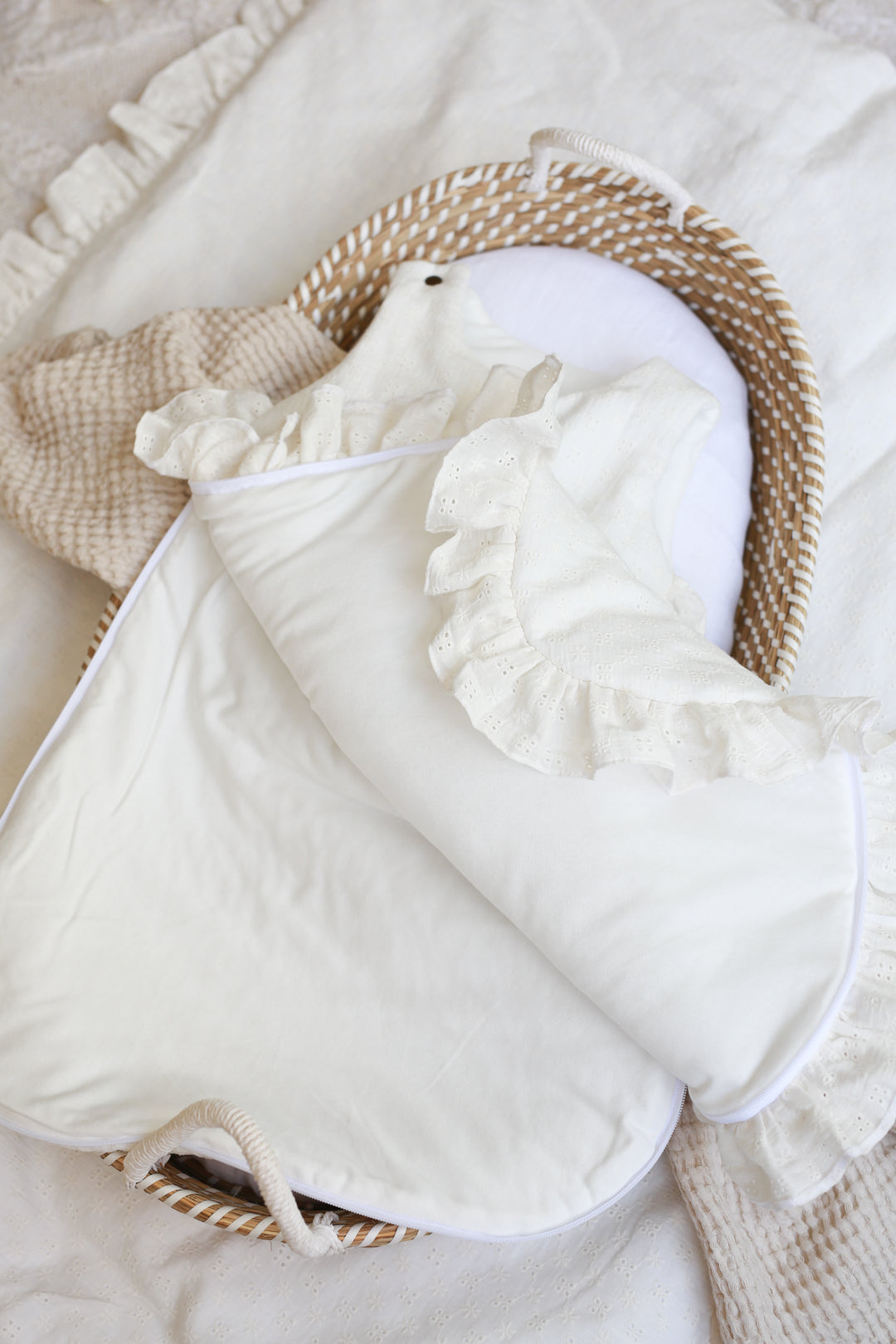 Om het verschonen van de slapende baby gemakkelijker te maken, hebben we de slaapzak uitgerust met een rits in ¾ van de omtrek van de slaapzak. Het is gemakkelijk om je peuter los te maken en vast te maken. Op een van de armen heeft de babyslaapzak een drukknoop waardoor het makkelijker is om de baby erin en eruit te halen. De geborduurde slaapzak is gemaakt van hoogwaardig dubbelgaaskatoen met borduursel en zeer zachte stof. Lengte: 70 cm